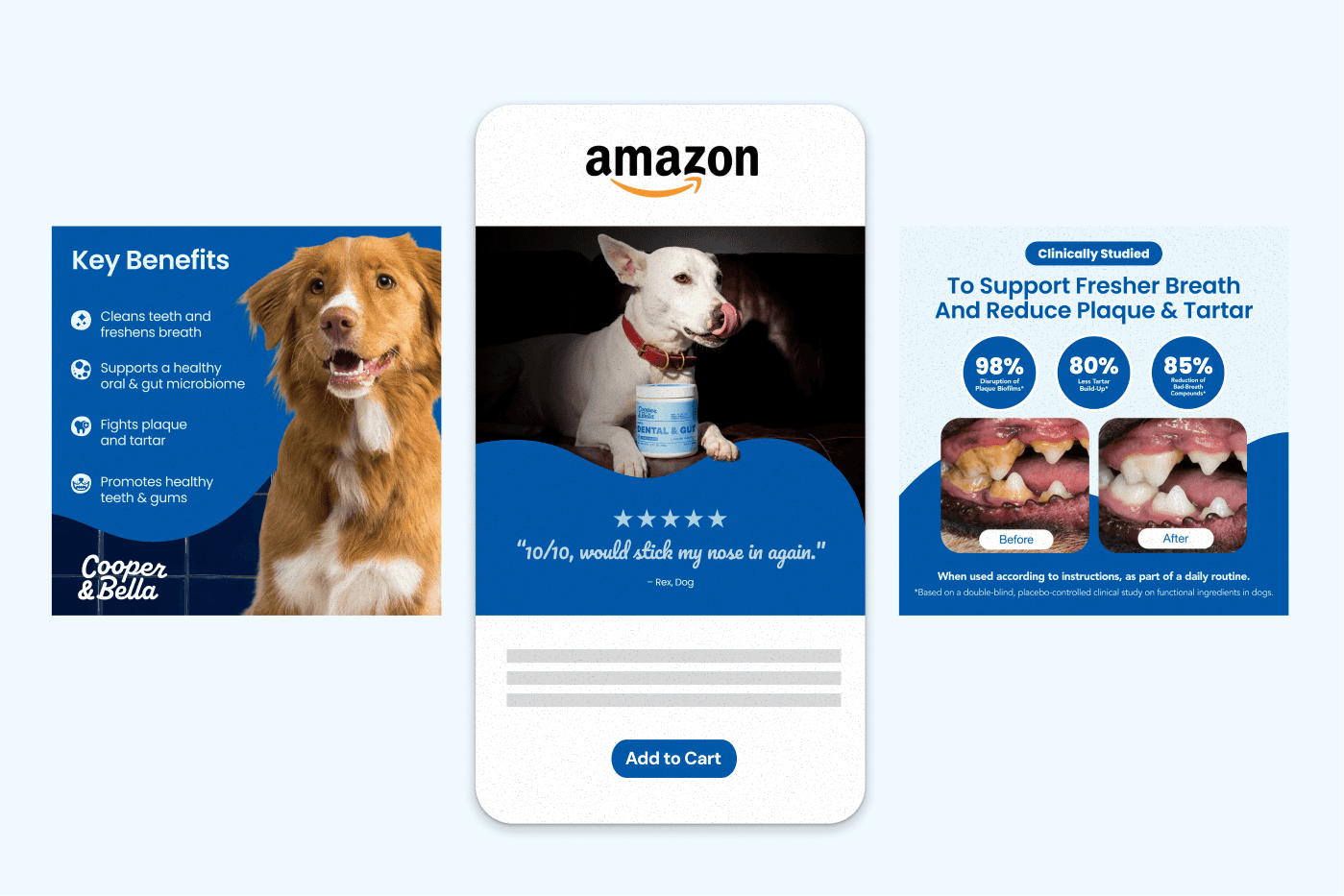 I developed the full brand identity system, balancing clinical credibility with warmth and approachability. In addition, I designed a high-converting Amazon asset suite featuring product imagery, infographics, A+ Content, and scalable templates for future SKUs. Every touchpoint was strategically crafted to build trust, communicate benefits clearly, and drive conversion in a competitive supplement market.
