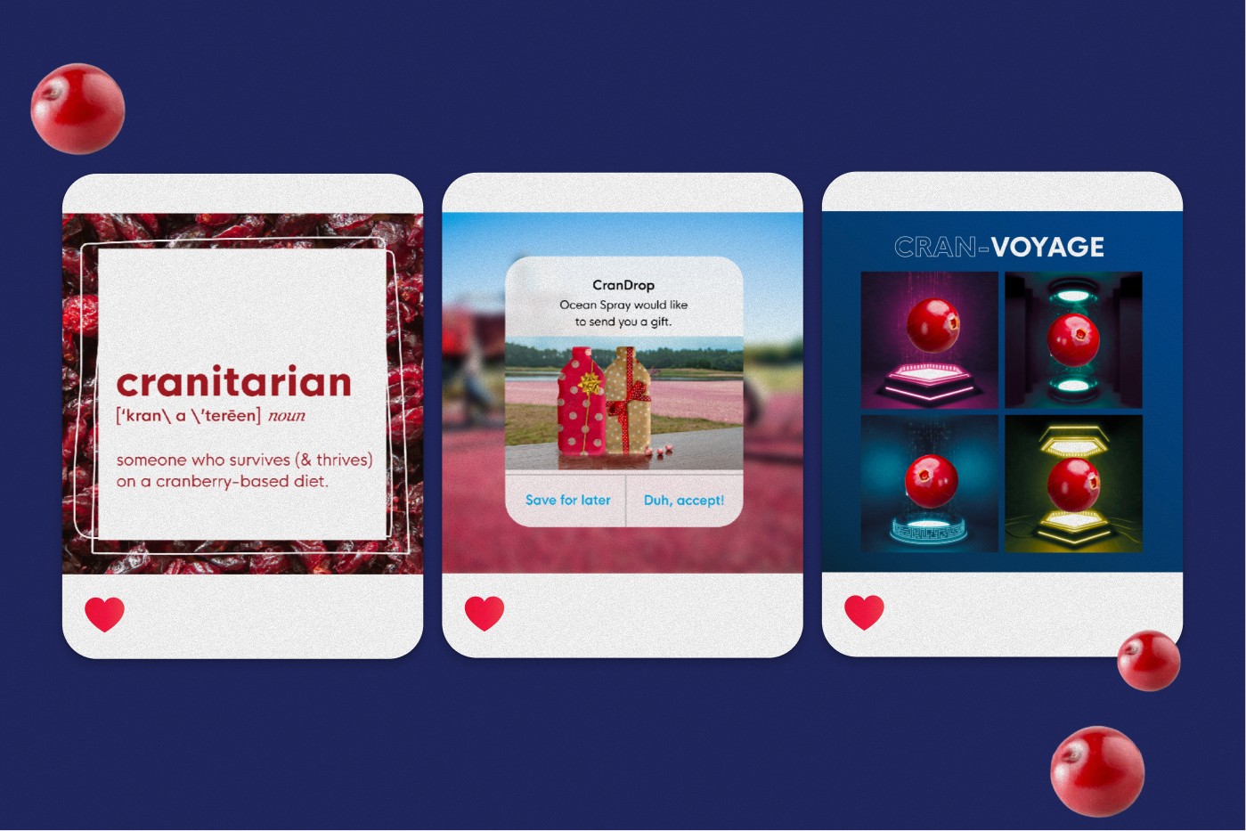 Served as a seasonal contract designer at Ocean Spray, creating social media content, landing pages, digital assets, and campaign graphics for high-visibility campaigns. Focused on maintaining brand consistency while adapting designs for multiple platforms, formats, and audience touchpoints.