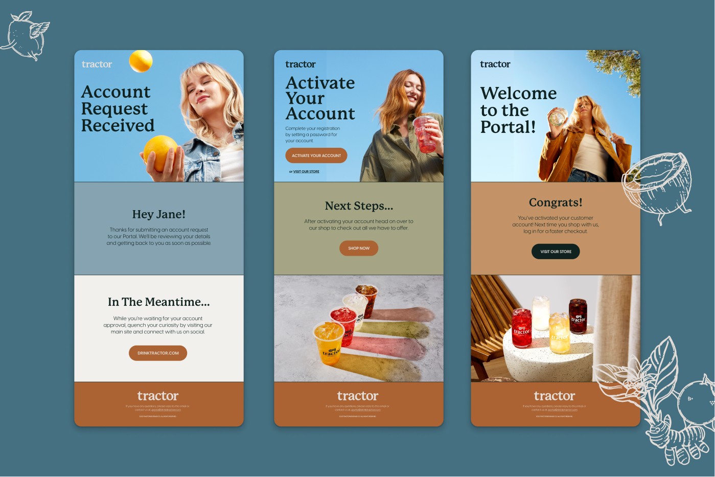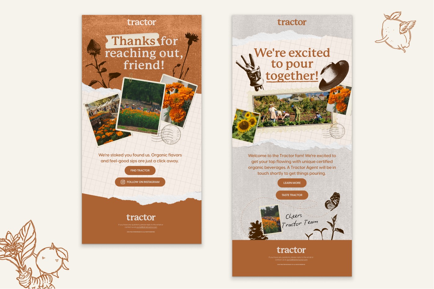 Designed emails, digital assets, merch, and packaging at Tractor, helping bring the brand to life across screens, shelves, and everything in between.