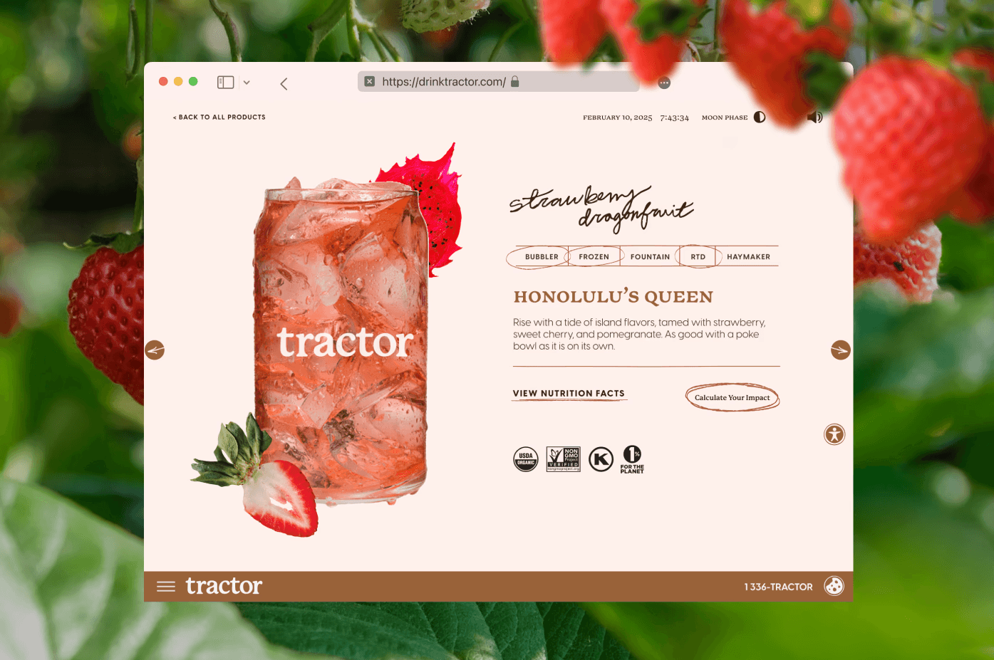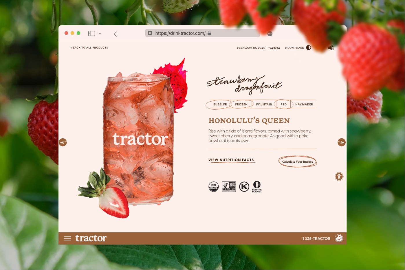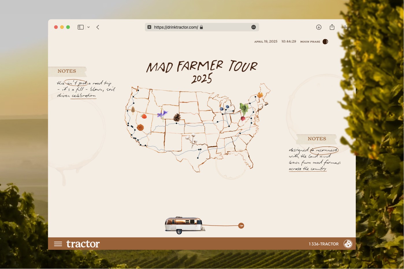 Art Directon, design, and development for Tractor's custom designed Framer site. Site utlizes user-location for a custom immersive experience with weather, seasons, and music.